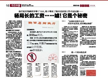 9月21日,《重庆晨报》再次推出近一个整版的报道,《杨局长的工资……嘘!它是个秘密》这个显眼的版面头条,更是在各大论坛、微博上被网友热传。强大的舆论风暴,甚至一度波及杨达才的上司。