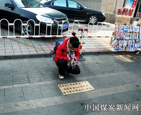 12月20日,笔者因事出差山西省太原市,中午12时,笔者一行前往太原火车站购票返回郑州,途经太原火车站广场对面人行道时,发现在该人行道一售报亭旁,半跪着一个身背旅行包(类似书包),戴一幅近视眼镜,年龄大约在20岁左右,穿着和打扮很象学生模样女孩。在该女孩面放着一块硬纸板上,写着:“急求6元钱吃饭,因不幸一时落难,好心人帮我凑张车票回家好吗?谢谢!”
