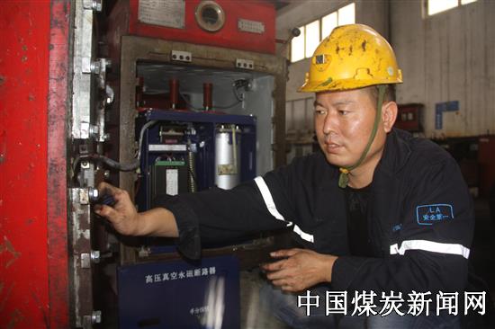 图二:9月5日,该矿机修车间职工正在维修一台矿用隔爆型移动变电站用永磁高压真空开关