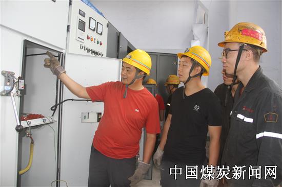 图三:9月6日,该矿机电运输科派出机电技术骨干在矿工业广场配电室组织年轻职工开展机电系统技术讲座,