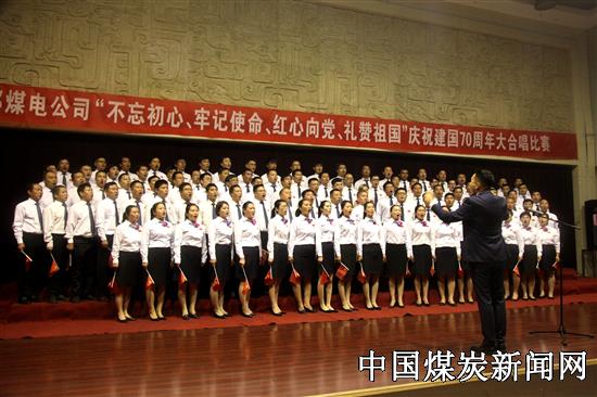 【本网讯】为庆祝新中国成立70周年,提高职工团队意识和凝聚力,9月26日7点,新郑煤电公司在服务楼三楼多功能厅举办“不忘初心、牢记使命、红心向党、礼赞祖国”庆祝建国70周年大合唱比赛,来自该公司各系统的7支代表队参加了比赛,干部职工和家属600余人到场观看。比赛在洗煤系统代表队合唱的《在太行山上》揭开序幕,整个比赛精彩纷呈,吸人眼球,《我的祖国》、《爱我中华》、《我的中国心》、《黄河大合唱》等一首首脍炙人口的歌曲将比赛一次次推向高潮,雷鸣般的掌声一次又一次响彻整个现场。参与合唱的干部职工个个精神饱满、斗志昂扬,用嘹亮的红歌讴歌伟大祖国,赞美壮丽新时代。比赛在歌曲《我和我的祖国》中落下帷幕。最终,通风安全系统代表队夺得大合唱比赛第一名。