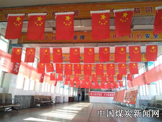 【本网讯】为庆祝祖国70华诞。日前,安徽淮北矿业袁店一矿在矿门口、工业广场、食堂、副井大厅等地段,悬挂了近千面小型国旗。图为该矿副井大厅悬挂的近百面小型国旗。