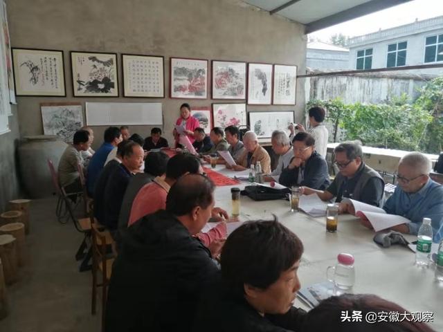 图为刘开渠故居诗词书画社会员在召开会议,听报告,相互交流学习。