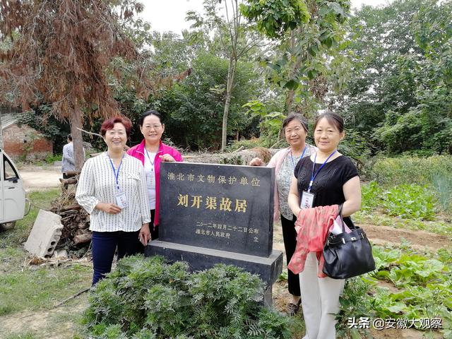 刘开渠故居还保留着原来的乡土风貌,土墙,木门,木窗棂,陈年熏烤的土烟灰还染在墙上,门口依然是泥土小路,青青的小草和野花在墙角生长,飘溢着泥土和花草的清香。一行诗词书画社会员在故居前参观。