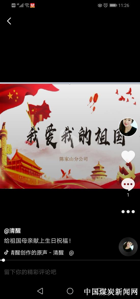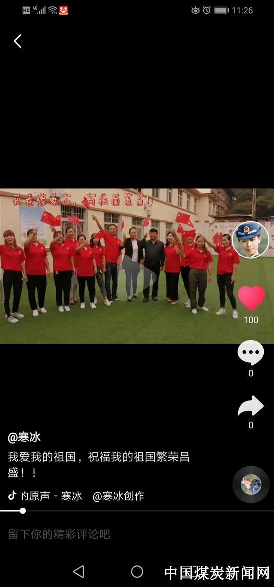 【本网讯】为歌颂祖国,喜迎国庆,铜川矿业公司华远实业陈家山管理中心组织本单位人员,利用新媒体平台向祖国献礼,歌颂祖国的伟大成就。 本次活动得到了同志们的大力支持,在新媒体平台上同志们运用多种方式向祖国献礼。大家同唱“我和我的祖国”、共跳“我爱你,中国”,大家还相互点赞并转发好的作品。 此次活动激发了同志的爱国热情,让自己的梦和中国梦相连,让对自己明天的向往与祖国的未来相连。