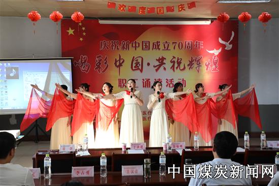 【本网讯】为庆祝新中国成立70周年,歌颂伟大祖国发展成就,激发爱国、爱企、爱岗热情,9月27日下午,山东能源新矿医疗集团组织举办了“喝彩中国、共祝辉煌”职工诵读活动。活动现场,来自各基层医疗单位的9名白衣天使尽情歌颂祖国70年的沧桑巨变和辉煌成就,声情并茂,富有深情地把爱国的热情传递给在座的每一位观众。她们时而慷慨激昂,时而舒缓动情,丰富的形式、不同的风格展现出她们不同的风采。一份份高昂饱满的激情,一首首发自肺腑的朗诵,不仅给现场观众带来一次精神上的洗礼,更激发了广大职工的爱国之心,为新中国成立70周年营造了庄严喜庆、欢乐祥和的节日氛围。