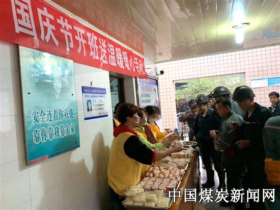 【本网讯】10月4日,正值川煤集团达竹公司小河嘴煤矿国庆后开班的第一天,该矿工会在井口矿嫂爱心服务站开展了“庆国庆保安全”送温暖活动,为上下班职工的送去了节日的祝福和组织关爱。