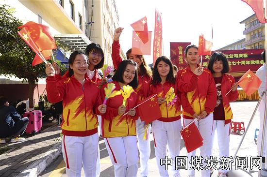 演出期间、基层区队同时也编排了各种庆祝节目同台演出,同煤文工团节目歌曲连唱流金岁月、歌伴舞歌唱祖国、我和我的祖国、新的天地、同煤,我永远的家等文艺节目把庆祝演出推向高潮,参加演出是员工、群众不停的挥动着国旗一起歌唱我和我的祖国 !