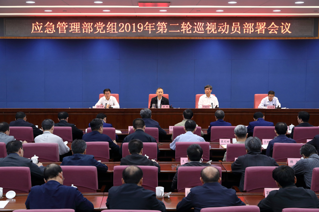 10月10日,应急管理部党组书记、巡视工作领导小组组长黄明出席部党组2019年第二轮巡视动员部署会,强调要深入学习贯彻习近平新时代中国特色社会主义思想特别是习近平总书记关于巡视工作重要论述精神,坚守政治巡视定位,发扬斗争精神,锤炼斗争本领,精心组织第二轮巡视,督促抓好巡视整改,保证部党组内部巡视的质量和效果。
