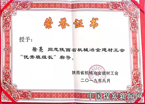 公司炼钢厂连铸车间1#机乙班喜获“陕西省机械冶金建材工会先进班组”荣誉称号,轧钢厂轧机装配车间机加班班长徐亮喜获“陕西省机械冶金建材工会优秀班组长”荣誉称号。