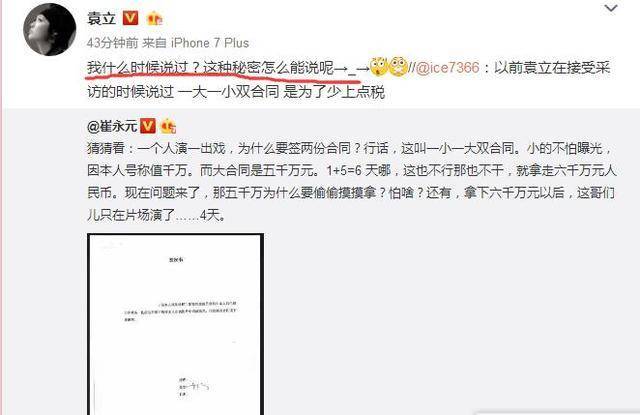 这几则微博引起网友关注。有人回忆起此前袁立在接受采访时,曾说过“双合同的是为了上税”的话。对此,袁立本人回复,称“这个秘密怎么能说呢”,暗示内有乾坤。