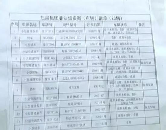 超越集团非法集资车辆清单