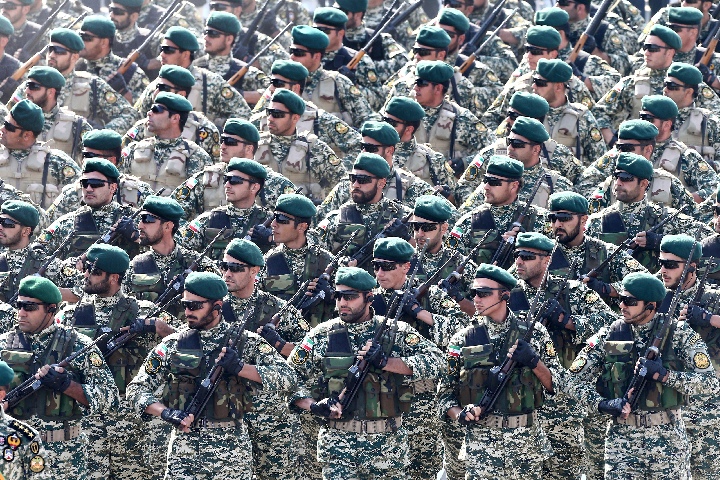 4月18日,在伊朗首都德黑兰,伊朗士兵参加阅兵式。当日,伊朗建军节阅兵式在德黑兰举行。(新华/美联)