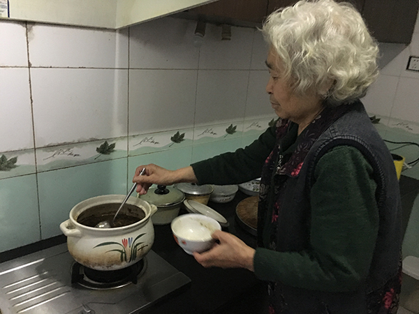丁玉琼在家中熬中药