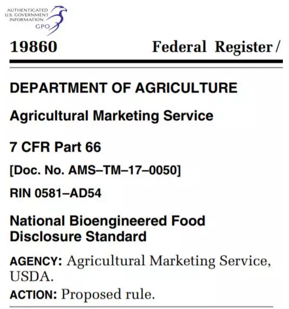 每日经济新闻小编(微信号:nbdnews)在美国政府网站查询到,美国农业部近日颁布了《国家强制披露转基因食品标识法案》。