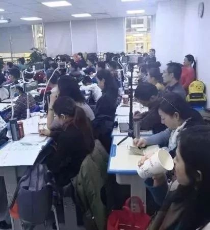 图片附加了解释,说这是奥数教室后面,家长都是跟着旁听的,笔记、摄像一个不落,回家提问孩子和复习巩固。
