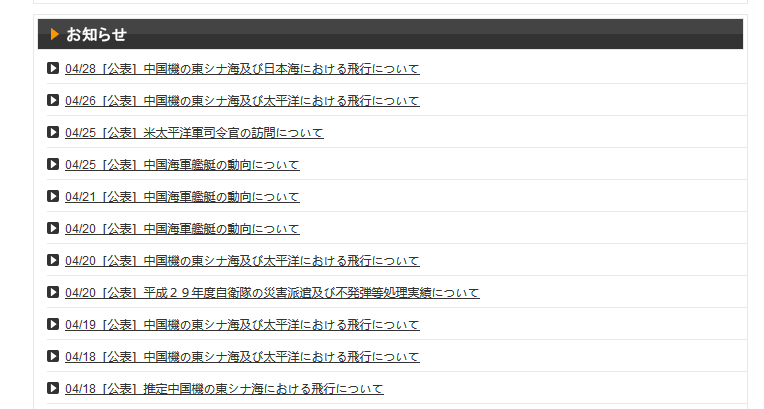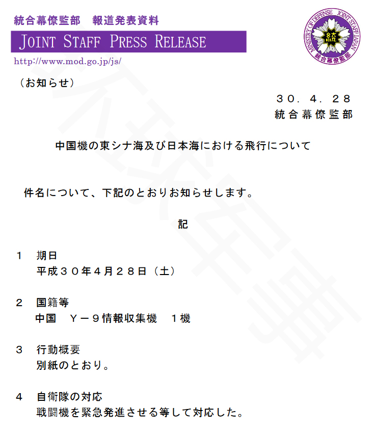从日本统合幕僚监部的信息公布记录上可以看出,从4月18日起至4月28日10天时间,日本的所有类似“战斗机紧急起飞”应对6次全是针对中国军机,还有3次“P-3C飞行确认”应对中国军舰,10天内9次,可见近日中国海空军出动频率之大。