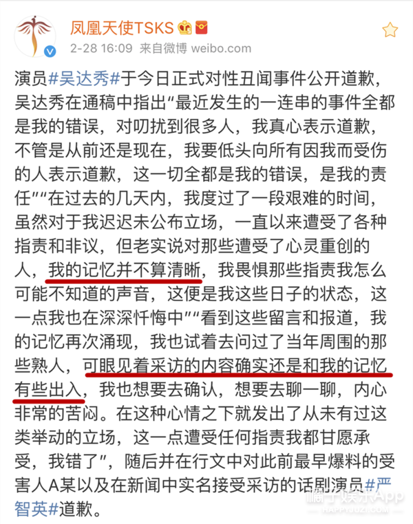 最终,吴达秀以公开道歉的方式承认了自己当年的所作所为: