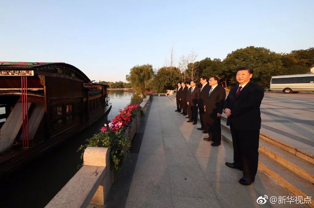 党的十九大闭幕仅一周,中共中央总书记、国家主席、中央军委主席习近平带领中共中央政治局常委李克强、栗战书、汪洋、王沪宁、赵乐际、韩正,于10月31日专程从北京前往上海和浙江嘉兴,瞻仰上海中共一大会址和浙江嘉兴南湖红船,回顾建党历史,重温入党誓词,宣示新一届党中央领导集体的坚定政治信念。