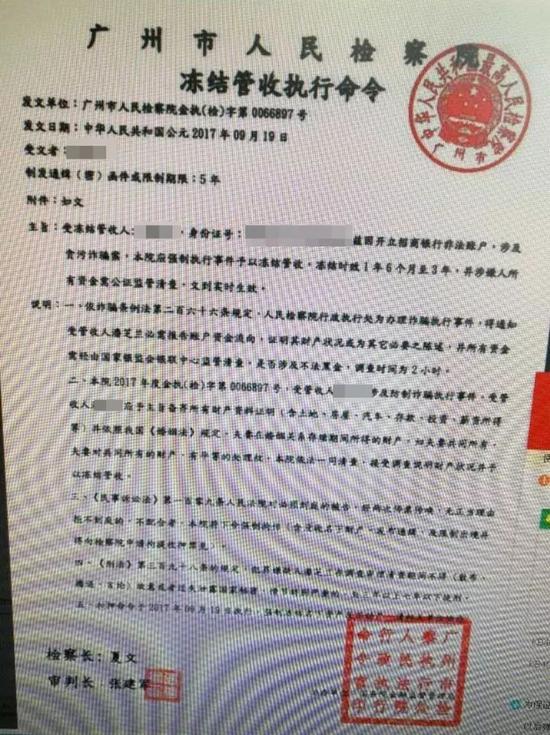 (李大姐收到的“广州市人民检察院财产管收执行命令”)