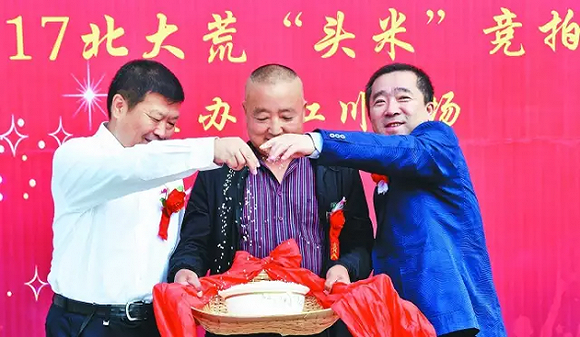 竞拍仪式上,起价每斤188元的北大荒“头米”经过多轮叫价,最终被深圳一家大米销售企业以每斤1888元的价格竞拍成功,创造了新纪录。
