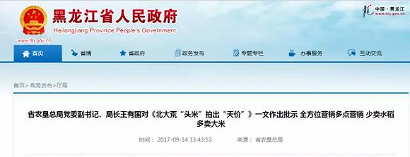 除此之外,农场此举还获得了黑龙江省农垦总局党委副书记、局长王有国的批示,“很有创意,大力宣传,全方位营销,多点营销,少卖水稻,多卖大米! 江川农场值得表扬。”