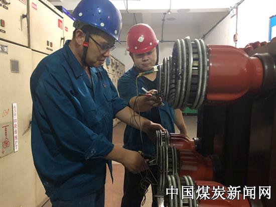 【本网讯】近日,为确保发电机开关运行稳定,早日达到供暖条件,峰峰集团电业分公司五矿电厂对发电机开关进行特性试验,确保开关指标符合标准。图为试验现场。