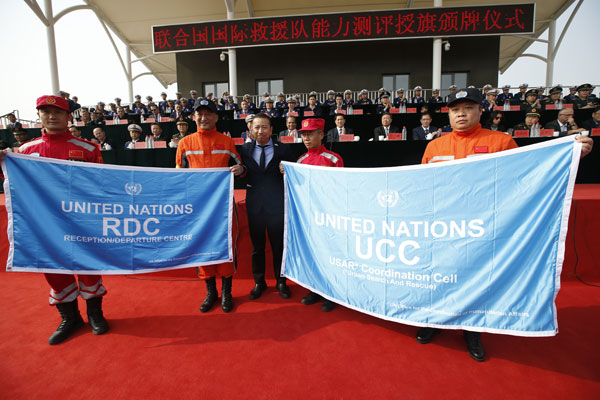 联合国人道主义事务协调办公室代表拉梅什·拉杰辛汗祝贺中国成为亚洲首个拥有两支国际重型救援队的国家,感谢中国政府在国际人道主义事务中所作的突出贡献,期待中国救援队和中国国际救援队在国际人道主义救援行动中发挥更大的作用。