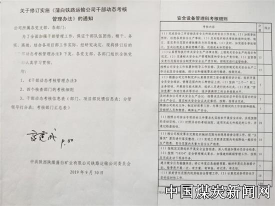 【本网讯】近期,蒲白铁路运输公司为全面加强干部管理工作,对《蒲白铁路运输公司干部动态考核管理办法》进行再一次修订。