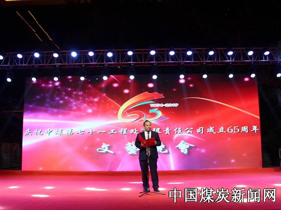 【本网讯】11月4日晚,中煤第七十一工程处有限责任公司成立65周年文艺晚会在公司机关大院成功举办。集团党委委员、工会主席王振江,宿州沱河街道春光社区党委书记、居委会主任刘成,公司党政班子成员,部分离退休老干部,机关和基地片区单位职工及家属在场观看了演出。