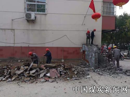 大锤声声振耳,风钻嗒嗒作响。工程虽小,也得按部就班作,操作人员相互协作,各自分工组合,破楼前散水,不一会的功夫,就黄土垫层外露,实干加巧干,原有推拉门门洞,在一锤一锤阵阵敲打声中被慢慢削平。同时,现场安全管理人员履职尽责,现场安全交底,安全巡查,一刻也不放松对施工人员的安全提醒,监督巡查没有半点马虎。