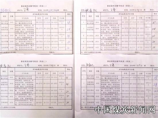 该公司制定了《事故案例讲解考核表》,由听课职工在各管理人员讲解结束后,就案例内容的切合度、分析情况、语言表达、综合印象、会场效果等进行打分,安检科结合讲解人员材料以及职工打分情况,进行综合考核、奖惩,确保事故案例讲解达到预期效果。