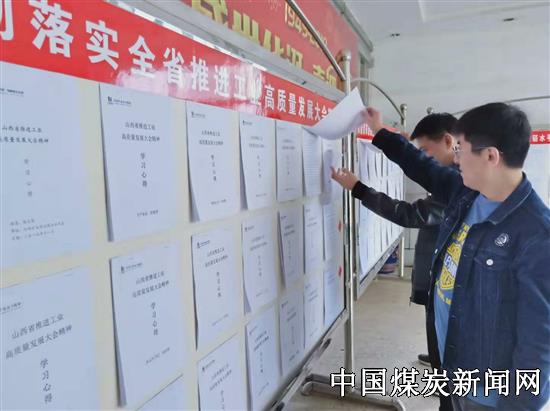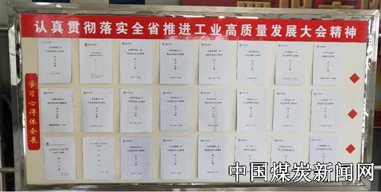 【本网讯】为了确保“山西省推进工业高质量发展大会精神”学习活动取得实效,努力提高党员干部理论水平,使每名党员干部都能投入公司高质量发展工作中,11月12日 ,山焦汾西南关煤业公司在联建楼一楼大厅举办了学习“山西省推进工业高质量发展大会精神”心得体会展。