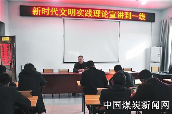 【本网讯】11月20日,淮北矿业工程处邹庄矿建工区开展“新时代文明实践理论宣讲到一线”活动,文明实践理论宣讲员孙晓超给工区广大干部职工宣讲党的十九届四中全会公报、《中共中央关于坚持和完善中国特色社会主义制度、推进国家治理体系和治理能力现代化若干重大问题的决定》等内容,通过宣讲党的十九届四中全会精神,进一步引导职工提高政治站位,提振精气神,积极投身于安全生产,为打造美好和谐科区和“五个一流”目标迈向质量时代努力工作,助力工区高质量发展。