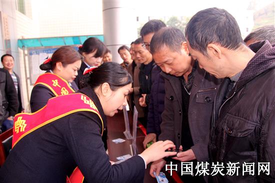 11月21日,达州市邮政储蓄银行工作人员到川煤集团达竹公司小河嘴煤矿为该矿职工集中办理工会会员服务卡激活业务。