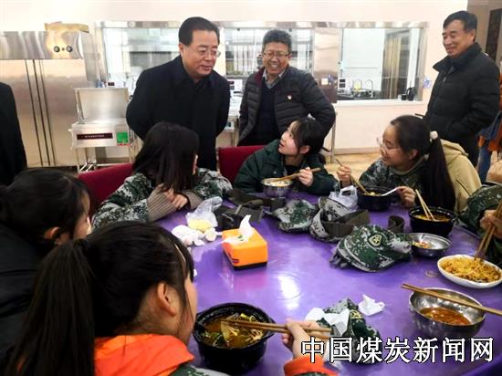 王海波一行在院长张晓彻的陪同下参观了兴致勃勃地参观了该校的学生餐厅,并与正在就餐的学生亲切交谈。随后到安全警示教育基地、模拟巷道、实训车间等地实地考察。最后,在二楼会议室与中层领导干部进行座谈。会上,院长张晓彻向调研组汇报了办学情况,“不忘初心、牢记使命”主题教育过程中需要上级部门协调办理的问题等。接着,权秋虎表示争取为厅属中职院校搞好服务工作,解决在主题教育过程中需要上级组织协调解决的问题。陈娟表示下一步将继续联系相关部门帮助学校解决问题。朱晓冬指出要重视师德师风建设和教师队伍建设工作。