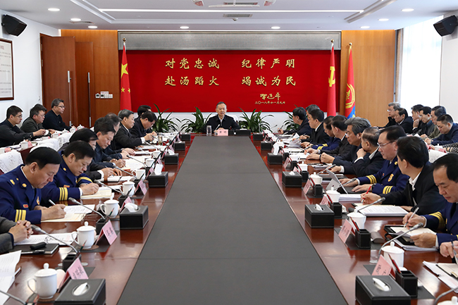 会议指出,党的十九届四中全会胜利闭幕后,中央政治局就以我国应急管理体系和能力建设为题举行第十九次集体学习,充分体现了以习近平同志为核心的党中央对应急管理工作的高度重视和关心关怀,体现了应急管理在国家制度和治理体系中的特殊重要性。习近平总书记亲自领导党和国家机构改革决定组建应急管理部,亲自缔造国家综合性消防救援队伍,多次组织会议专题研究部署应急管理工作,为新时代应急管理事业改革发展指明方向。我们能够有幸担负新时代应急管理工作这一历史使命,这是总书记、党中央对我们的高度信任,是我们的光荣和责任,要以强烈的政治责任感使命感荣誉感投入工作,决不辜负党和人民的信任和重托。