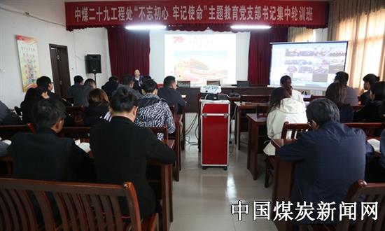 【本网讯】日前,中煤三建二十九工程处党委“不忘初心 牢记使命”主题教育党支部书记集中轮训班正式开班,该处机关各支部书记、全体党员,以及处直单位党支部书记、政工员现场聆听授课。各项目部党支部书记、副书记和政工员通过视频方式接受轮训。