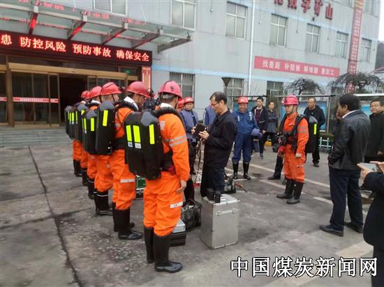 11月20日下午4时05分,指挥中心向救援队发出抢险出动指令(演练场景设置为建新煤化4207采煤工作面发生冒顶,造成人员伤亡事故),接到报警后指挥员布置任务,指战员们携带必备装备立即赶赴事故现场。到达现场后列队待命,根据演练筹备组的提问,回答应对处置措施。