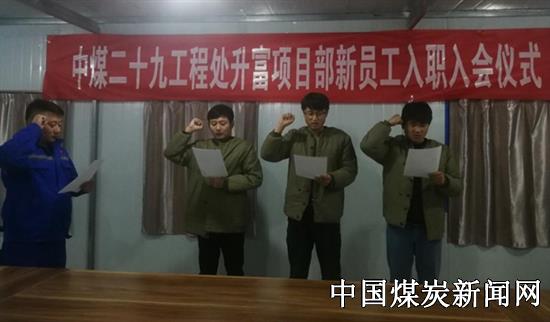 【本网讯】近期,中煤三建二十九工程处升富项目部车间工会组织了一场别开生面的新员工入职入会及“师带徒”签约仪式,仪式由项目部副书记、车间工会主席任源洋主持。