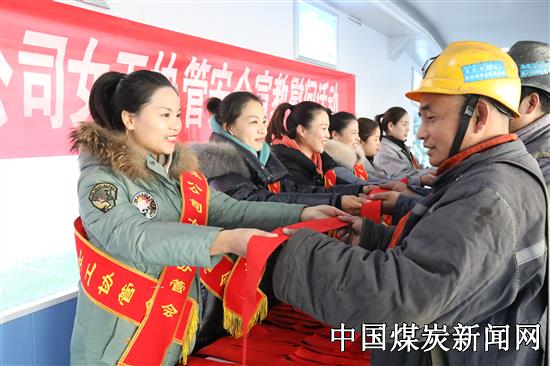 下午三点整,在党家河煤矿井口栈桥上,准备下井的各区队职工们排着整齐的队伍,井然有序的从栈桥平台经过,来自鹤煤工会本部矿井八位女工主任和协管员代表,不失时机的开展了“鹤煤公司慰问驻外职工女工协管安全宣讲和慰问”活动,当一条条绣满安全祝语的红腰带送到井下一线职工手中、一阵阵亲切安全叮嘱的话语传到他们耳畔时,鹤煤公司劳模采煤班长程国庆激动地说:“在陕北高原天寒地冻的时节,鹤煤工会不远千里派女工来党家河进行安全慰问,没说的,我们这些采煤工一定加油干,狠抓井下采煤面的安全生产,以圆满完成全年原煤产量的优异成绩,来回报家乡亲人们的真情厚意”!