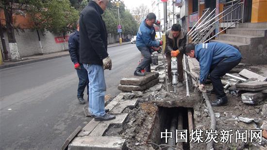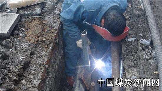 在改接过程中,现场负责人张盘龙指挥人员关闭2号调压箱,断掉17号楼顶和民生旅馆旁的供气阀门,同时将改接地点的各支管路阀门关闭,在气柜处使用增压泵向瓦斯管内注入新鲜空气,将17号楼楼顶和民生旅馆旁阀门处的观测孔打开释放瓦斯,经矿山救护队员、瓦检员、安检员多次检查现场无安全隐患、瓦斯管道内无瓦斯,焊工才使用电焊、氧焊开始焊接法兰盘,焊接完成后进行瓦斯管改接。在焊接过程中,施工人员在狭小的下水道中精准作业,在接近1摄氏度的气温下忙出了汗水。