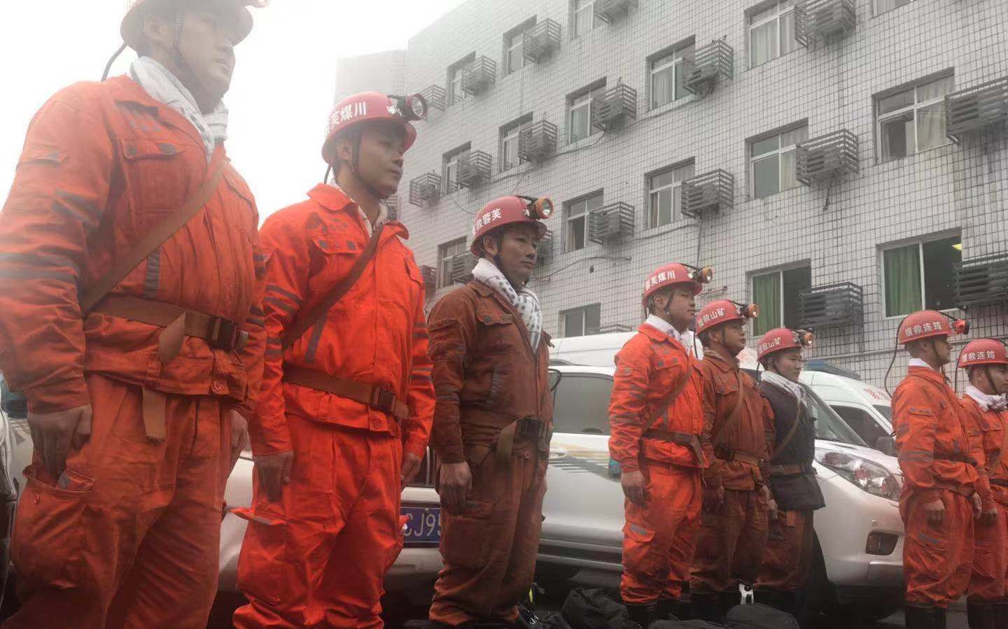 预备进场的国家矿山救援芙蓉队员 新京报记者 王昱倩 摄