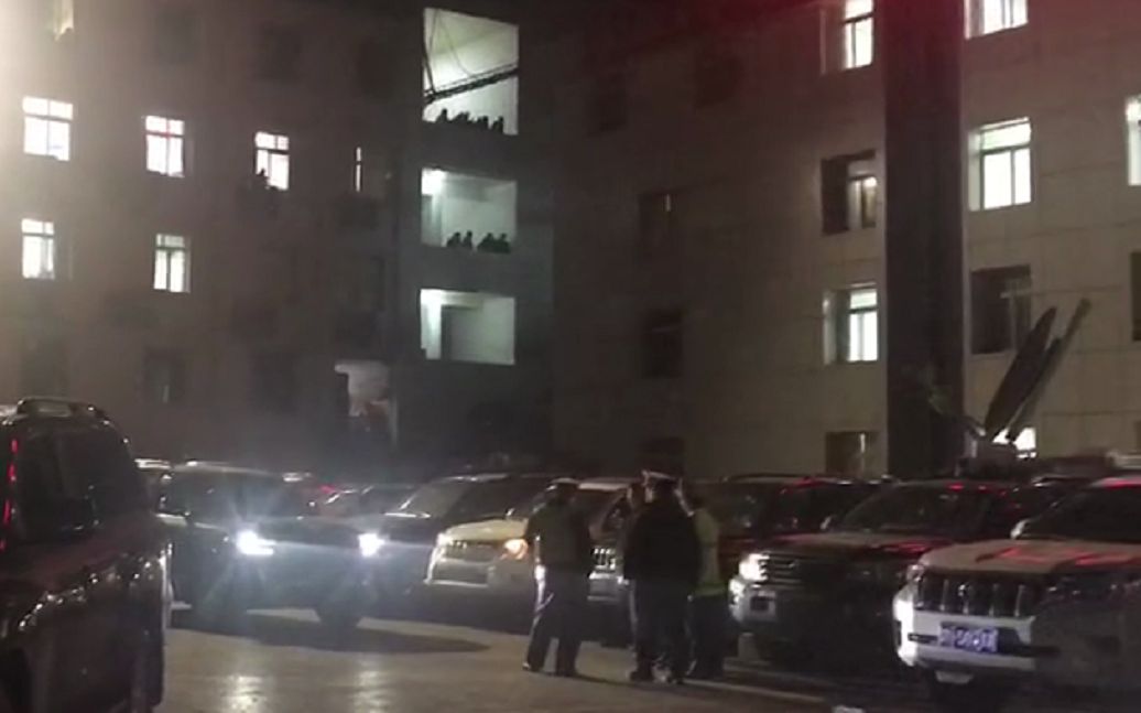 杉木树煤矿内有工作人员在办公楼前值守。新京报记者 王昱倩 摄