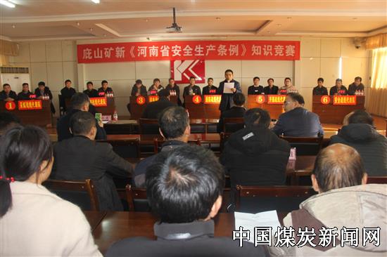 【本网讯】为深入推进新《河南省安全生产条例》的学习宣传和贯彻落实,进一步丰富职工安全生产知识,强化安全生产意识,提升岗位业务水平,12月30日下午,平顶山市瑞平煤电有限公司庇山矿在矿办公楼三楼多媒体会议室举办了《河南省安全生产条例》知识竞赛活动。来自矿采煤、地测、机电、通防、开掘、安全等六个战线参赛选手参加了此次比赛,矿长贺学、党委副书记杨帅领、安全矿长何学科及各单位的职工代表观摩了比赛。