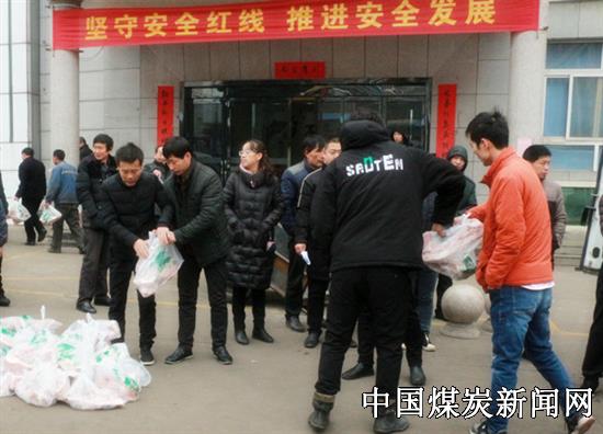 在欢庆新年来临之际,该矿工会牵头、联合劳社科,提前筹备,为全矿干部职工购置了陕西子午岭康源生态农业科技有限公司生产的绿色无公害“泰香猪肉”和 “宝贝蛋”,把矿党政的关怀与温暖送到干部职工的心坎上,让干部职工感受到企业大家庭的温暖和领导的关怀,感受到浓厚的节日氛围,从采掘一线、辅助单位到机关各科室,前来信息中心楼前领取“宝贝蛋”的干部职工们,纷纷掏出手机自拍,向家人分享传递着包含矿党政新年祝福及关切之情的喜悦。