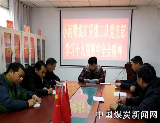 【本网讯】近段时间以来,川煤集团达竹公司小河嘴煤矿党委采取多种形式认真学习贯彻党的十九届四中全会精神,在全矿迅速掀起学习贯彻党的十九届四中全会精神的热潮,把全矿职工的思想和行动统一到党的十九届四中全会精神上来,坚定信心、统一思想、凝聚力量,全力做好当前的各项工作。