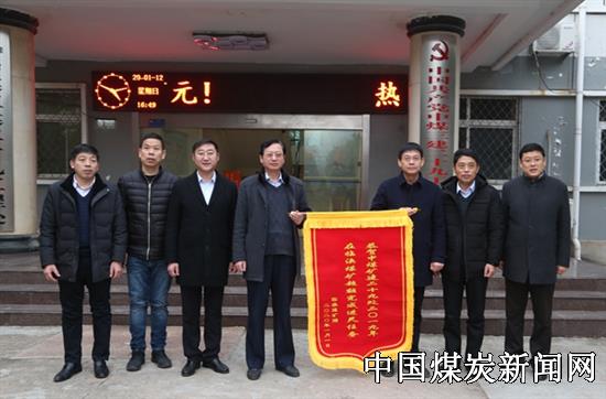 【本网讯】近日,淮北矿业临涣煤矿纪委书记李宗常一行来到中煤三建二十九工程处,将一面锦旗交到该处党委书记、处长陈志文手中,祝贺该处临涣项目部2019年超额完进尺任务。