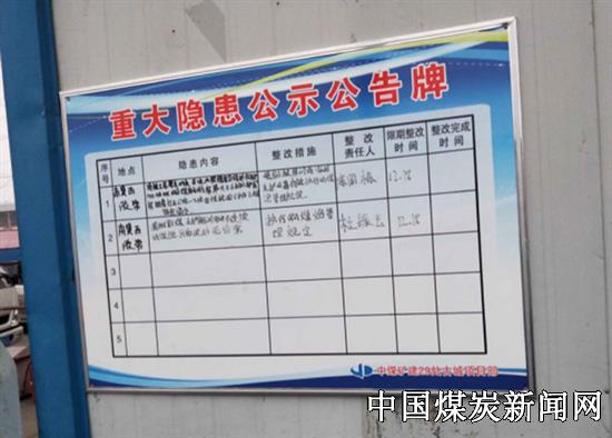 【本网讯】 近日,中煤三建二十九工程处古城项目部在显要区域设置了“重大隐患公示公告牌”和“重大危险源公示牌”,着力提高职工安全意识,保障项目安全生产。