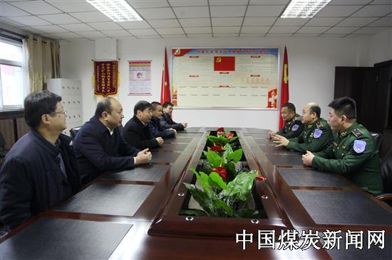 【本网讯】2020年1月21日上午,新春佳节来临之际,陕煤彬长矿业公司党委副书记、总经理王联合、纪委书记赵鹏、副总经理段王拴、党群工作部部长权恒,带着新春祝福和关怀,看望慰问了坚守工作一线的救护指战员。